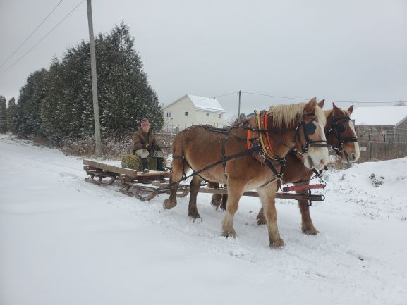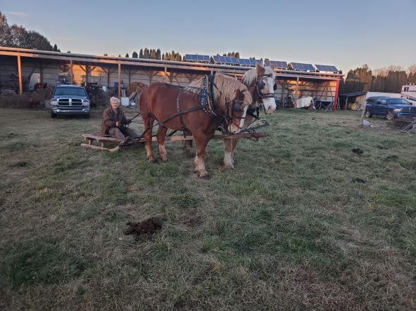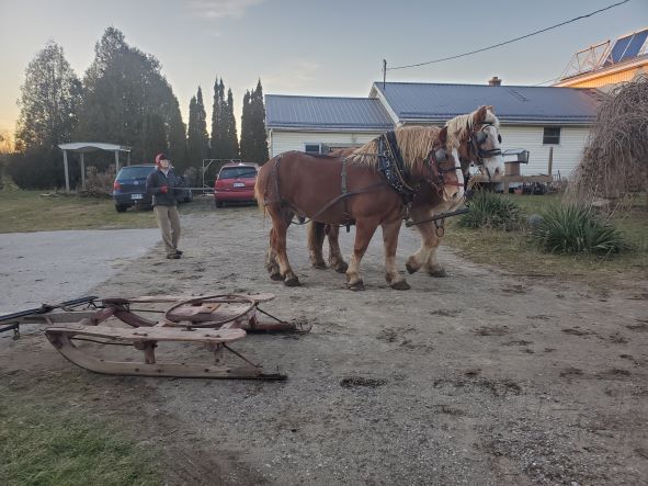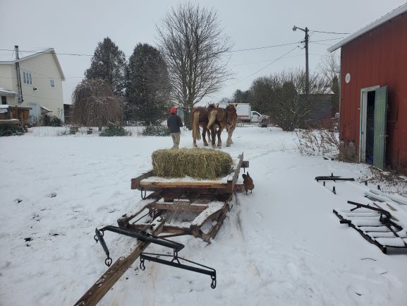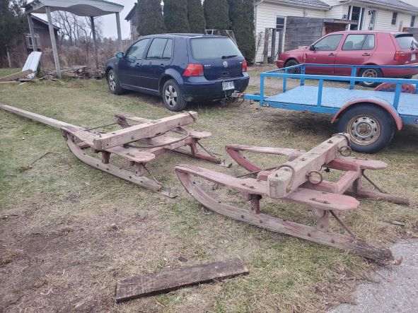Ready to try out. Need to put the tongue on for the horses, a few bales of hay and off to the woods when we get some snow. Dec 25 2021 .