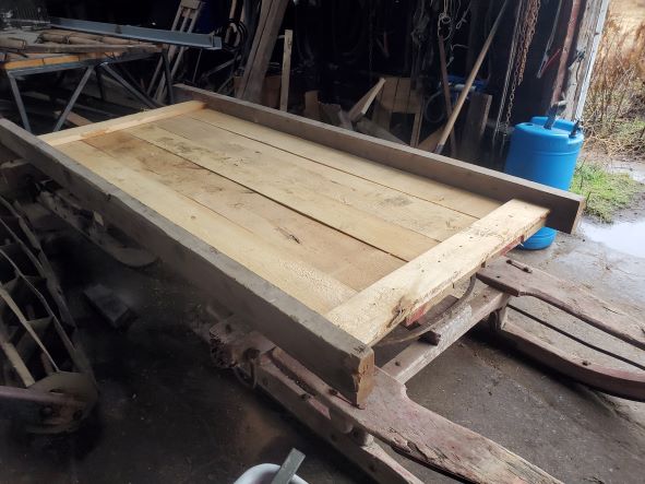 The new box for firewood. We will use hay bales to sit on. Everything comes apart easily if we want to just haul logs. Dec 25 2021