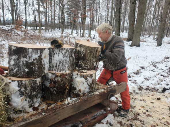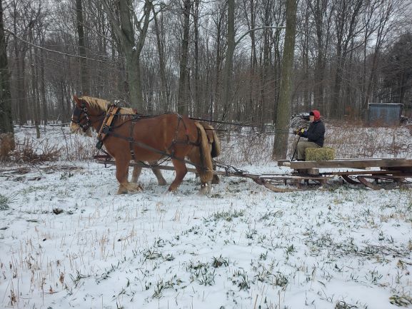 Dec 29 2021 . Mat Loading the sled with some very heavy maple logs for firewood.