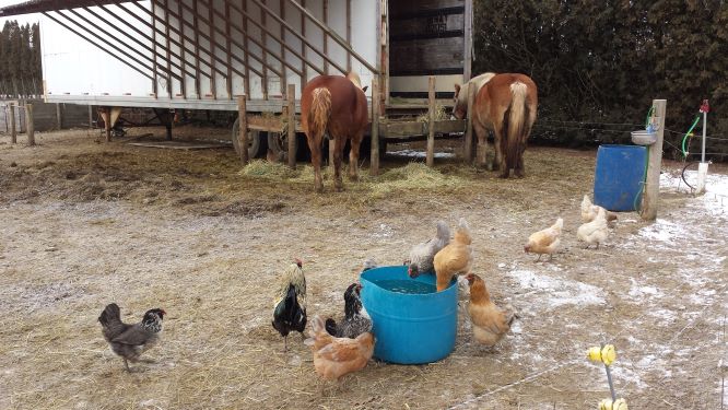 All our chickens are  pastured year round, although in winter, some choose to stay inside.  I feed them a combination of feeds. Organic scratch, containing oats, either spelt or wheat, and corn.