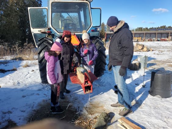 Dorothee and I need a little help splitting firewood so Shannon, Scarlett, Eleana and Ali worked the log splitter. It was a cold but sunny day.