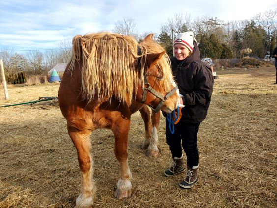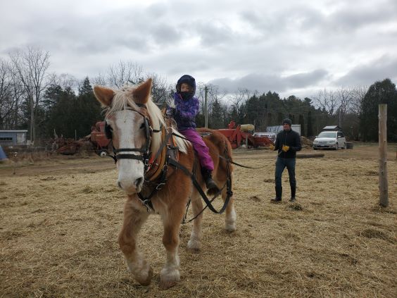 Ester loves riding a horse so here she is riding Jim and Ali is driving the horse.