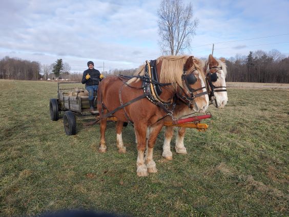 Ken driving Duke and Jim with a load of wood from the north woods.