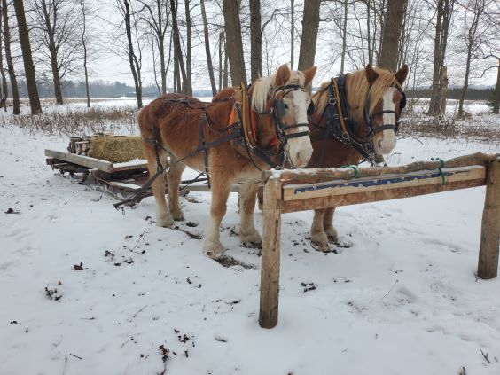 January 15 2026 This time of year makes me a little anxious when I look at the remaining hay for the horses. I have five horses and Sorrel the new lovable filly now 6 months old is almost full size and I think she eats more than her share just like any teenager! I had only reckoned on four horses for 2026 as Jim was getting very old and may not live for long. He had some teeth missing making eating hay very difficult so to solve this problem I decided to chip the hay so that it would be in smaller pieces which helps him eat. But first I had to modify the chipper as it had a gas motor which was very difficult to start in the cold so I put an electric motor on it which worked just fine. So I am still feeding Jim and have actually found him very useful in plowing the recent snow and I can't get rid of an old affectionate horse who still loves life? Luckily there have been a few days of very warm weather which has melted the snow in the recently harvested sunflower field. As I do every year when planting the sunflowers I also planted various clovers and grasses at the same time and they come up in the fall as the sunflowers ripen and give some much needed sunlight for the clovers and gasses. So when it is warm and the snow melts there is a wonderful field of new grasses and clovers which the horses love to eat. So now when the sun shines the horses get to feed in the sunflowers field to preserve my limited amount of hay. As an interesting aside to this is Jim's eating habits who barges in and thinks that he is the only one who is starved and he took some of his feelings out on Sorrel by biting her. This concerned me for a couple of days but then Sorrel got the idea of biting Jim back and it sure worked well at keeping Jim in line. Sorrel is learning very quickly on being part of the herd! Please visit out internet pages to see more of our farming world. (matsfineoilsandflour.ca) Thanks for your support, Mat and Dorothee