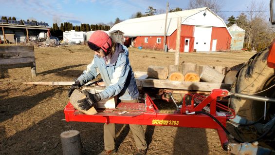 Feb 16 2024 Dorothee decided to split the firewood we brought in on the sled. |