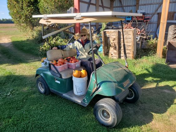 Jan 4 2024 Dorothee picking up Kale for our supper dish |